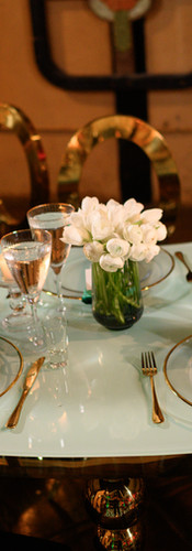Elevated Details: Napkins provided a pop of unexpected color in luxurious emerald green. Guests were seated in chic gold and black chairs.